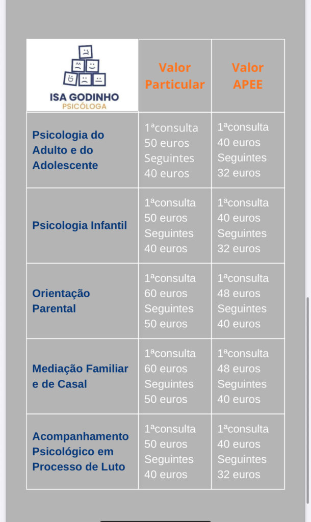 Esta nova parceria é com a Dr.ª Isa Godinho, uma profissional com 24 anos de experiência como Psicóloga, devidamente inscrita na Ordem dos Psicólogos. Ao longo da sua carreira, a Dr.ª Isa Godinho tem acompanhado pacientes de diversas faixas etárias, auxiliando-os em variadas questões emocionais e comportamentais através da sua intervenção terapêutica.